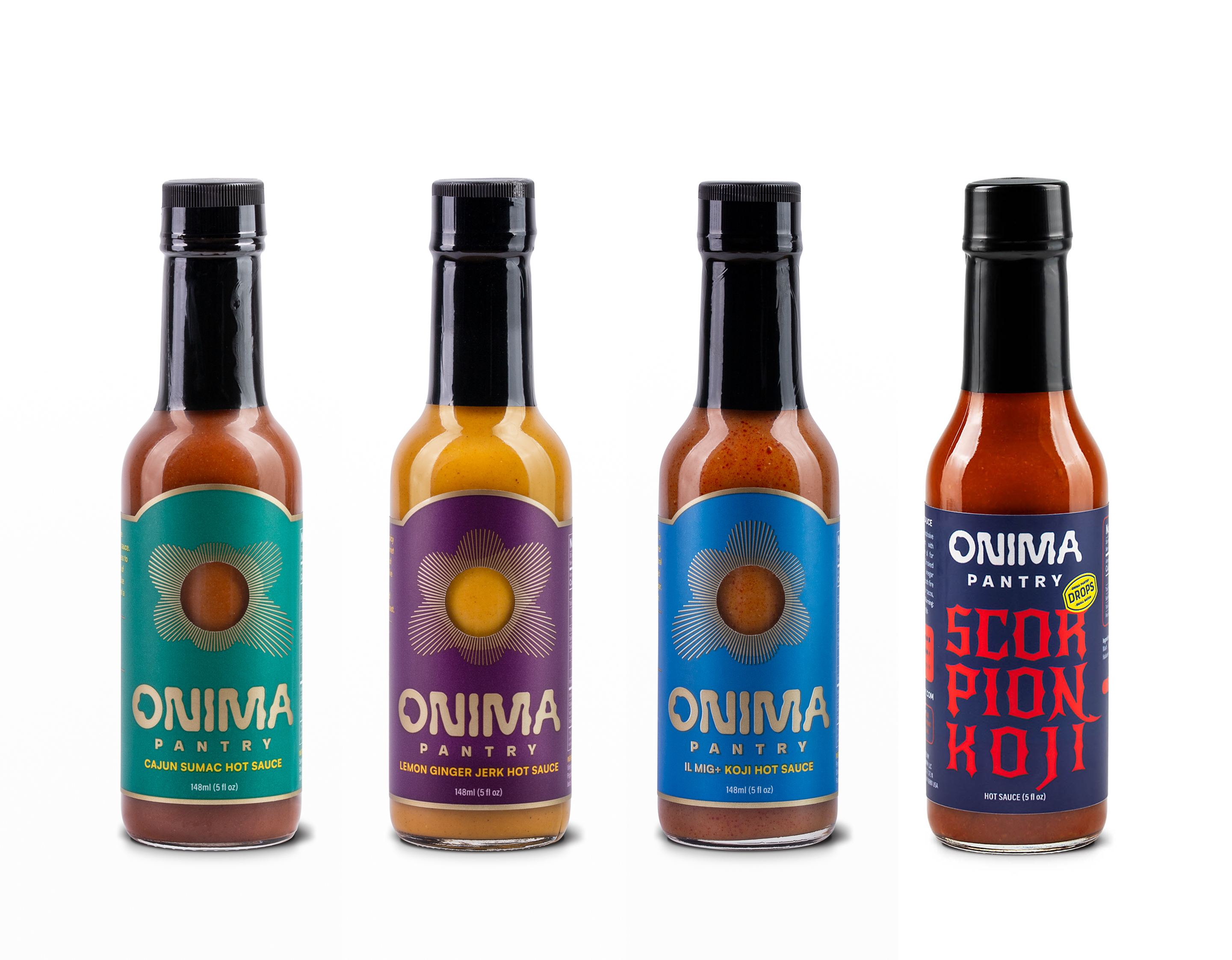 For tasting: Line up all four bottles with a neutral base (pizza, wings, fries, or veggies) and climb the ladder from Cajun Sumac to Scorpion Koji.