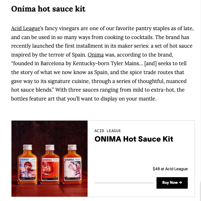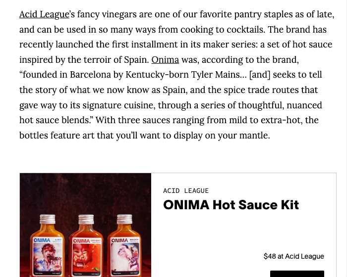 Our name ONIMA is “amino” spelled backwards — a nod to the amino acid garum project Tyler began during COVID. ONIMA started as a side project to help fund that original fermentation experiment.