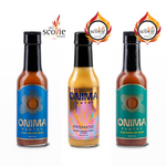 This award-winning hot sauce bundle includes IL MIG+, Prismatic, and Cajun Sumac — three Scovie Award–winning ONIMA sauces that cover bright, fruity, and smoky-umami flavor profiles.